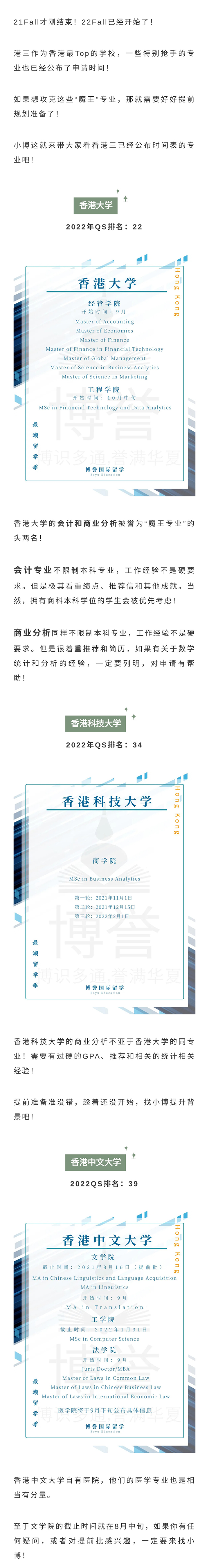 港三公布22Fall部分申请时间!包括了“魔王”专业!