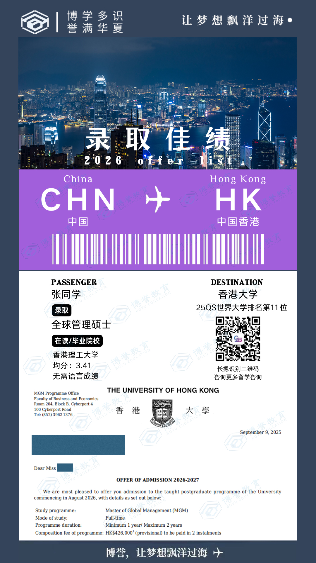 香港本科收获香港大学提前批全球管理硕士录取