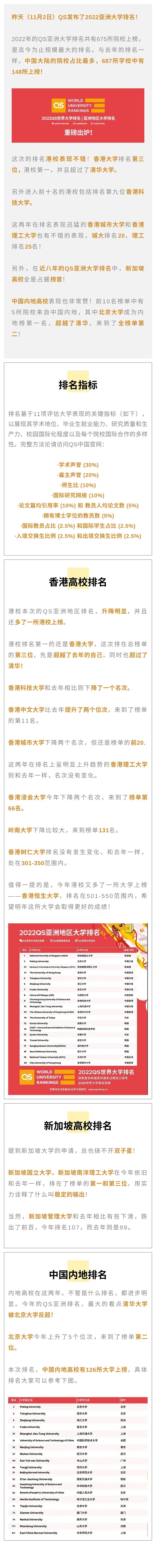 QS亚洲大学排名发布,港校成绩喜人