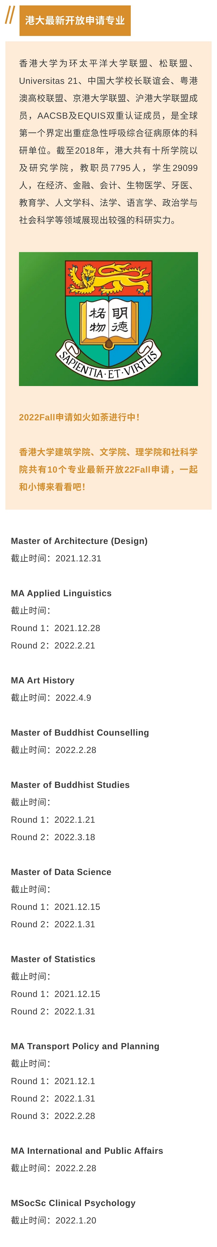 港大又有10个专业开放申请!涵盖这些学院