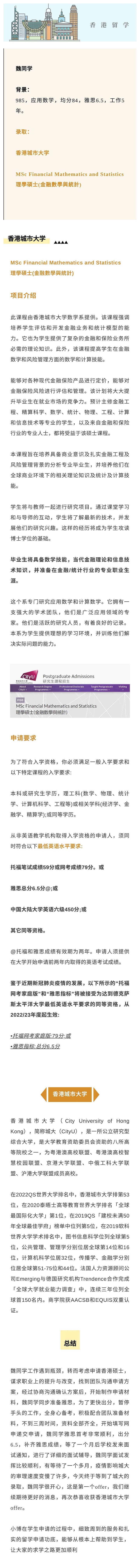 案例分享 | 五年工作党收获城大Offer