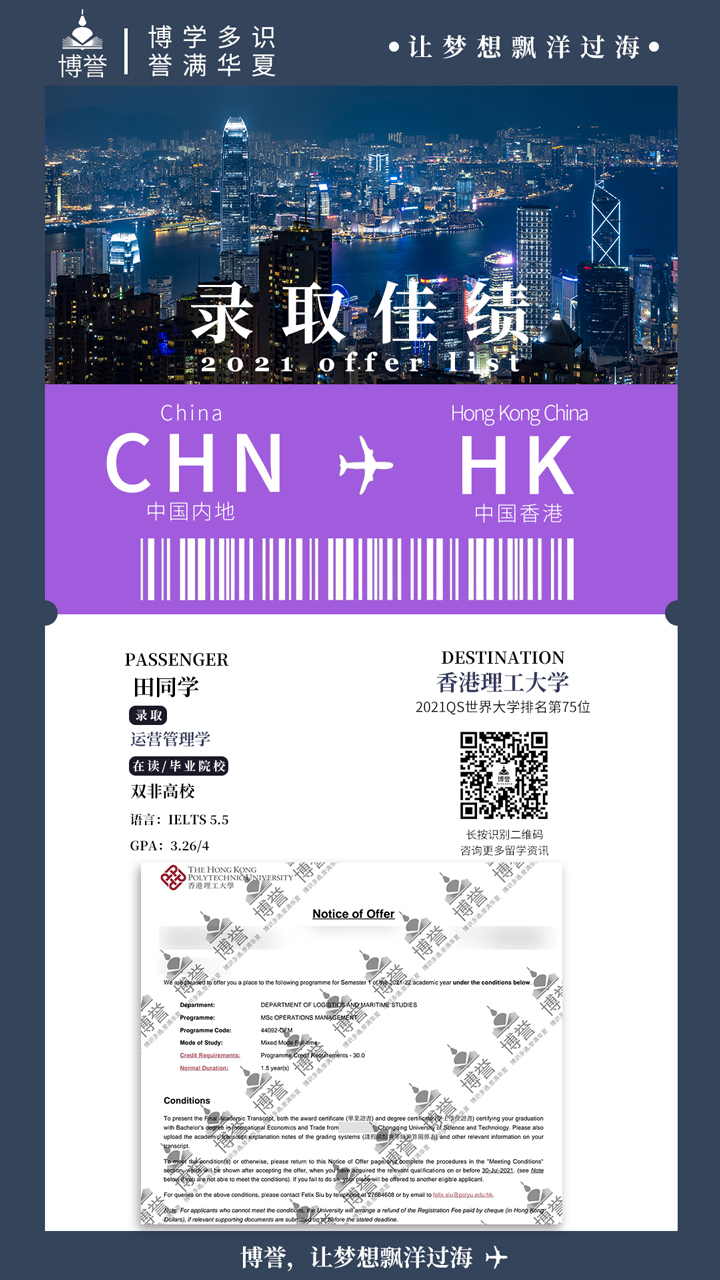 香港理工大学硕士,亲身经历留学的不同阶段,尤其擅长香港硕士申请,对香港各校教育体制、教学风格、招生机制熟稔于心,把握留学申请不同阶段的侧重点,带领学生规避盲区。行业内工作多年,独创“系统留学规划方案”,深受学生和家长的认可。