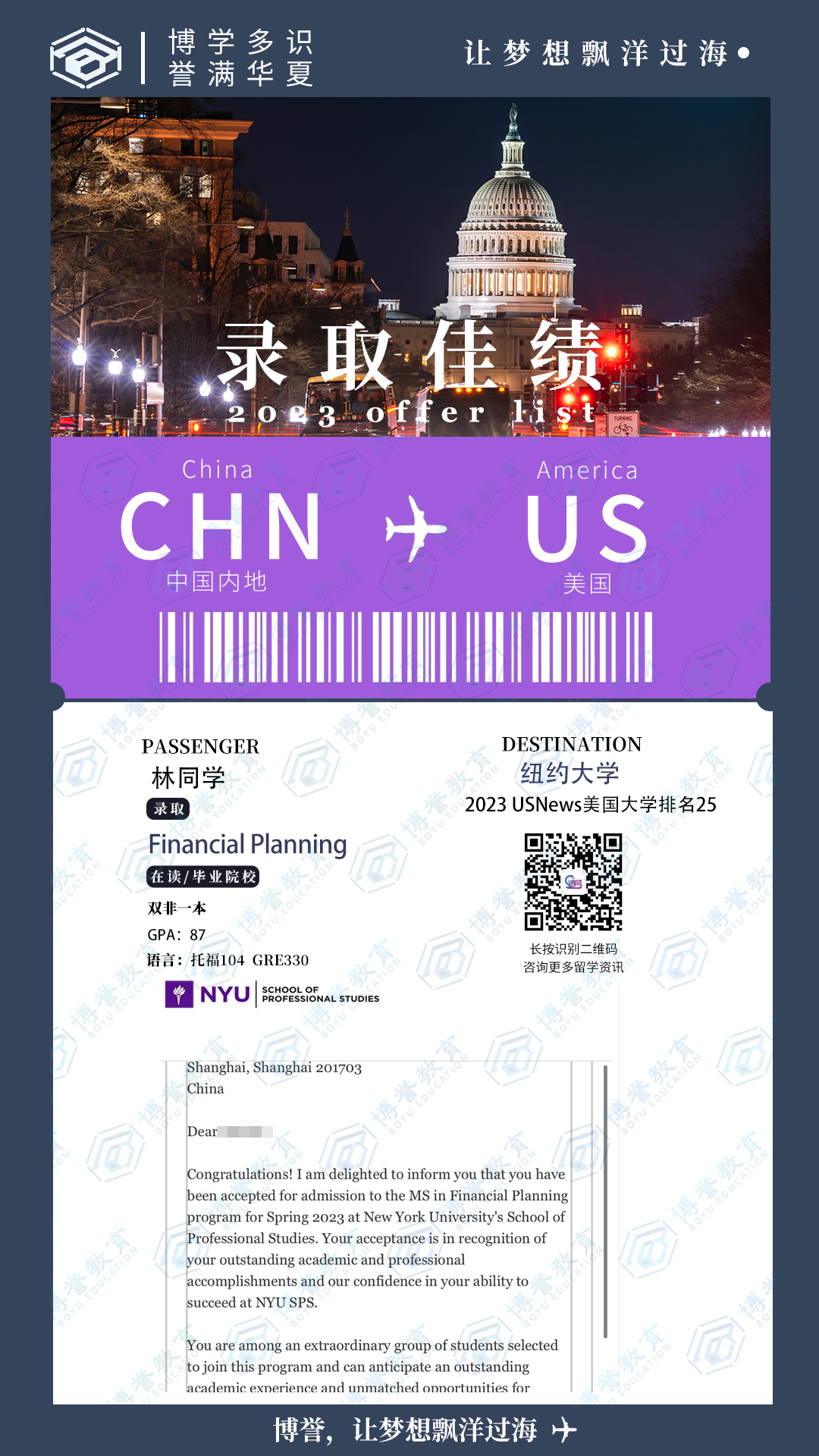 美国留学|双非圆梦收获纽约大学硕士录取纽约大学双非一本